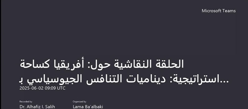 The discussion session was held to analyze the complexities of the geopolitical landscape, the tools employed by major powers, and the challenges and opportunities facing Africa amid a changing international environment. It highlighted the historical and geographical context, as well as the strategic objectives of global powers on the continent. The session addressed several key themes, including Africa as a battleground for economic competition and investment in natural resources, particularly in energy, minerals, and agriculture. It also examined the security and military dimensions of geopolitical rivalry, such as the establishment of military bases, joint exercises, and proxy conflicts. Additionally, the session explored the cultural and media aspects of influence, focusing on how major powers use cultural diplomacy, media, and other soft power tools to expand their presence and sway across Africa.